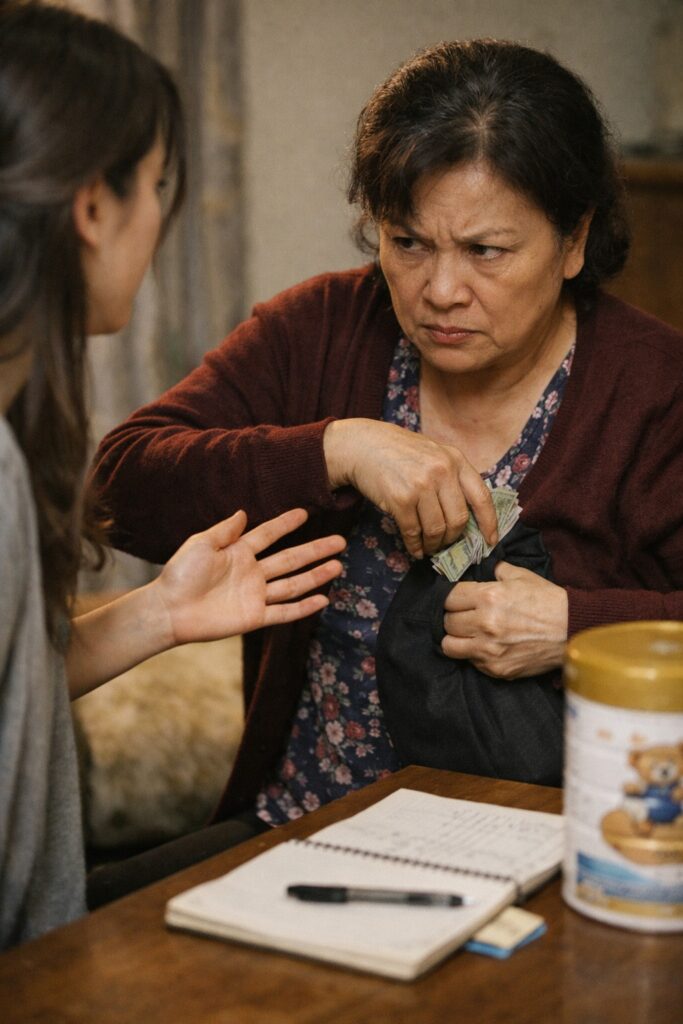 Khi bà lấy sổ ghi chép ra để đòi tôi hoàn tiền, bỗng nhiên nói: