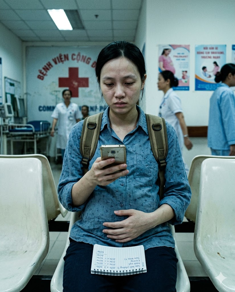Ngày phát hiện mang thai ba, tôi đang ngồi trên chiếc ghế nhựa ở hành lang bệnh viện cộng đồng, tính tiền sữa bột.