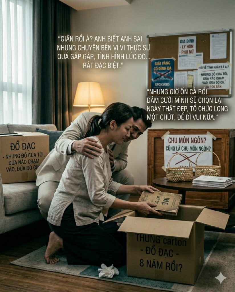 “Nhưng giờ ổn cả rồi. Đám cưới mình sẽ chọn lại ngày thật đẹp, tổ chức long trọng một chút, để dì vui nữa.”