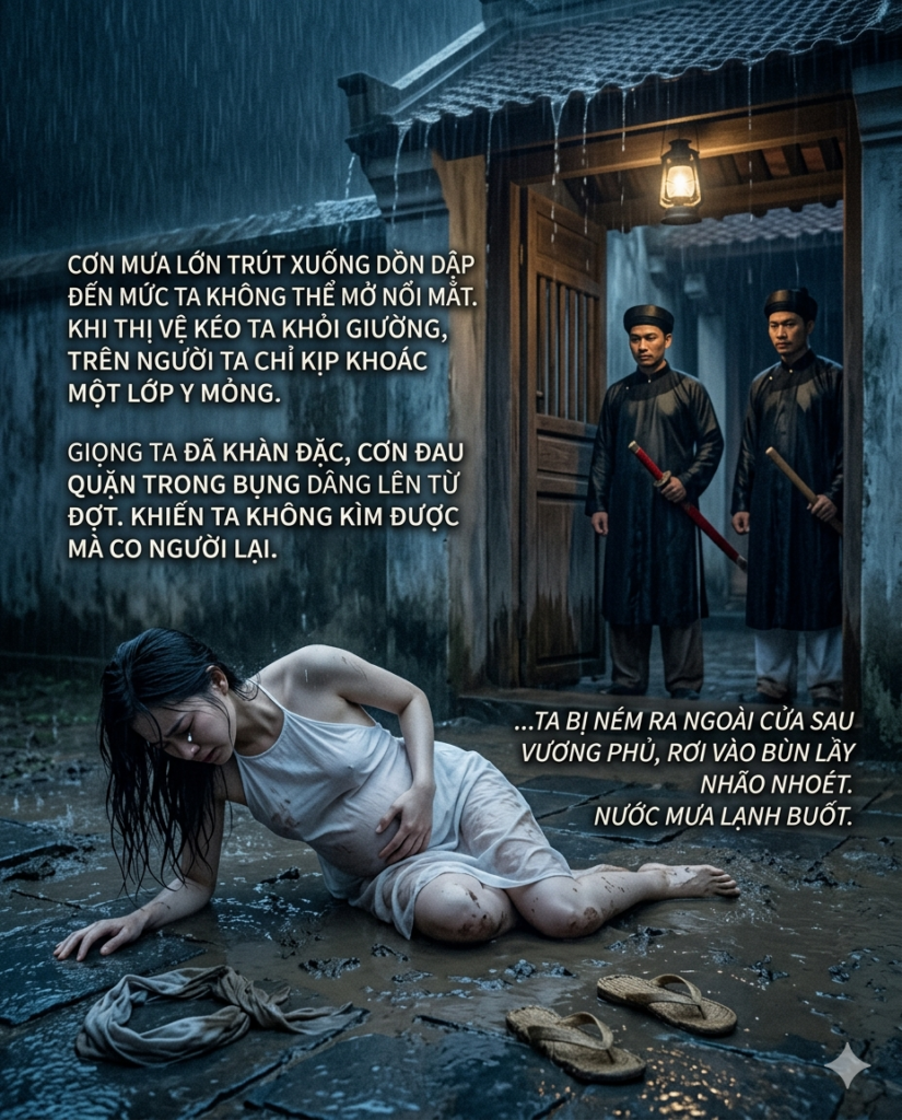 Giọng ta đã khàn đặc, cơn đ/au quặn trong bụng dâng lên từng đợt khiến ta không kìm được mà co người lại.